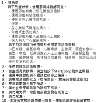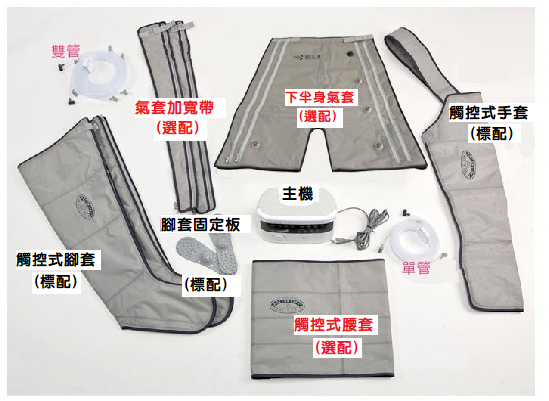 ● 原理: 利用氣套內氣體的加壓充氣,幫助促進血液循環,以達到按摩或減輕肌肉疼痛的作用。